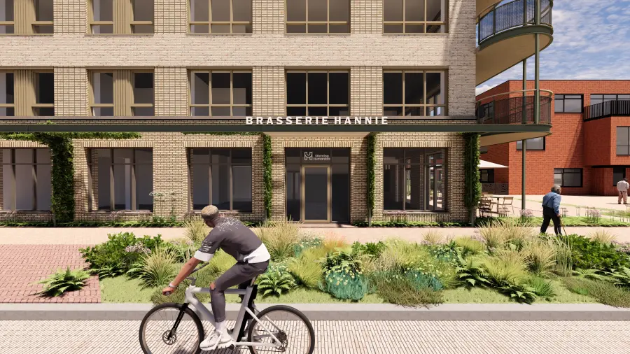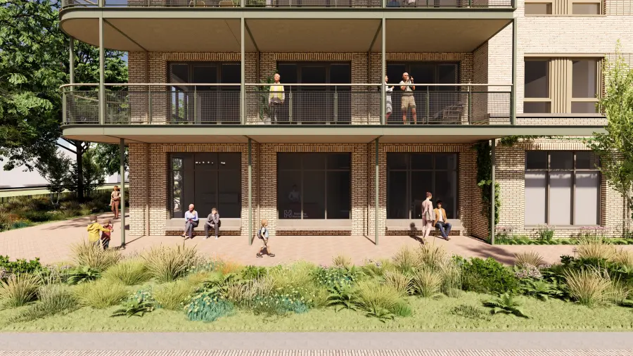 This design for a healthcare complex dedicated to elderly residents requiring significant care combines 160 care homes, shared facilities and a public ground floor that serves both the inhabitants and the people of the neighbourhood. The design emphasizes social interaction and connection, featuring shared living rooms, cozy nooks, and terraces where residents can meet and engage. The facade incorporates a wooden band with green and biodiversity features such as nesting boxes, harmonizing with the surrounding environment and bringing residents closer to nature. When you read between the lines, maybe you can spot our goal for this project: to provide a true home to its elderly future inhabitants.